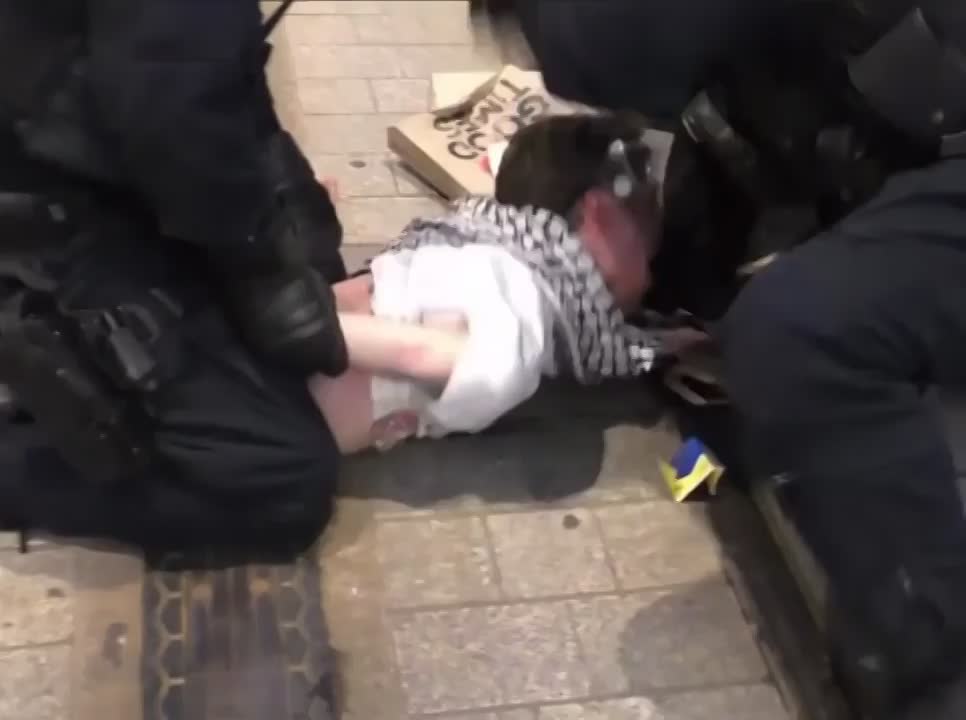 Rabid dog beaten by police for protesting Israeli president's visit.