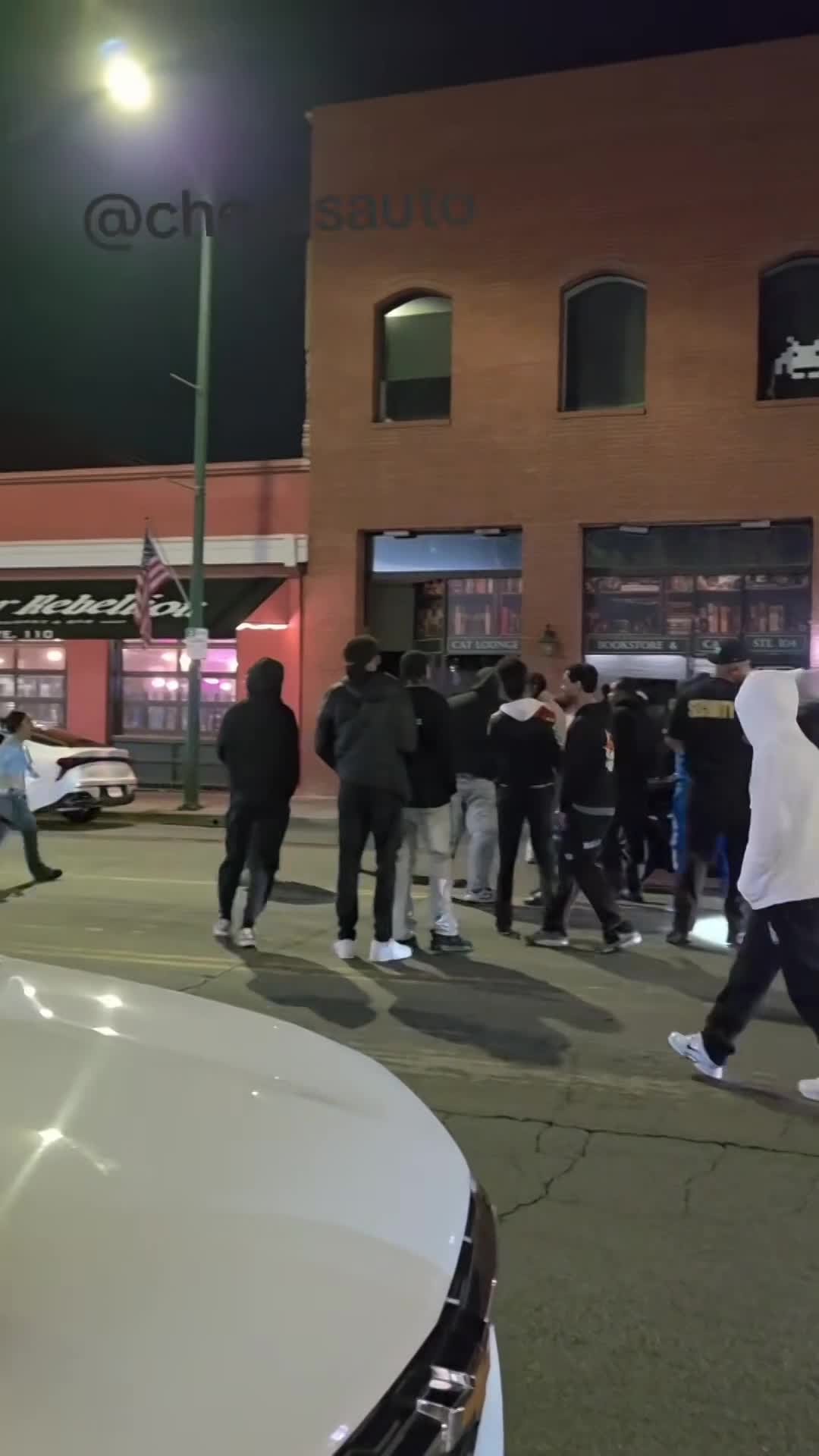 group of people confronts a person in a vehicle, then a shooting breaks out